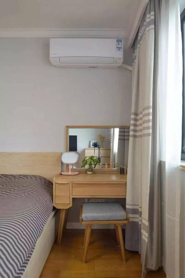 是的,把梳妝臺(tái)放在床的側(cè)邊也是個(gè)不錯(cuò)的選擇,剛好挨著窗邊,光線也不會(huì)昏暗;
