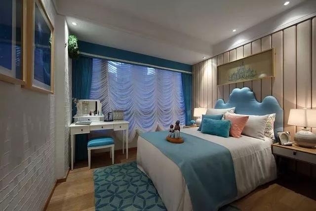 對(duì)于面積稍大的臥室,除了擺放床,床頭柜之外,可以把其中一個(gè)床頭柜撤掉,放梳妝臺(tái),倘若面積足夠大的,仍然可以保留床頭柜;